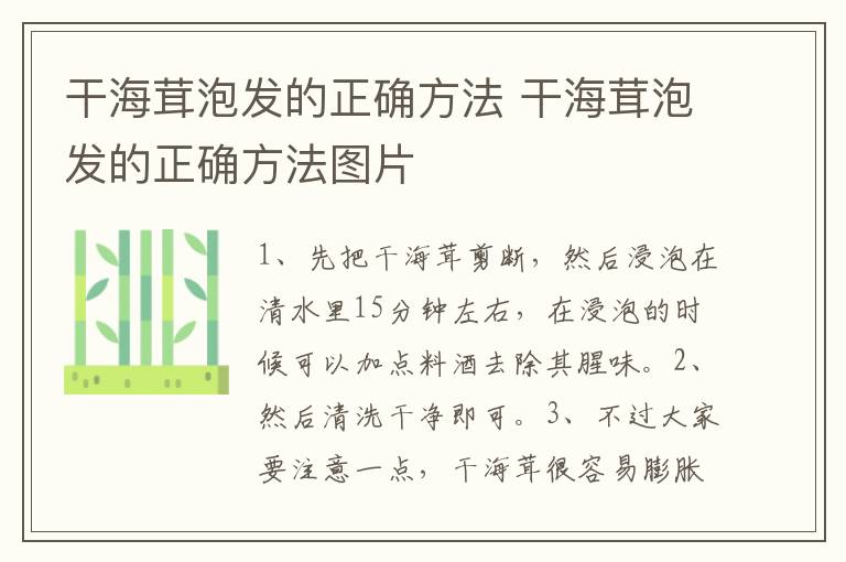 先把干海茸剪断,然后浸泡在清水里15分钟左右,在浸泡的时候可以加点料酒去除其腥味,然后清洗干净即可。不过大家要注意一点,干海茸很容易膨胀,一次性不要浸泡太多。