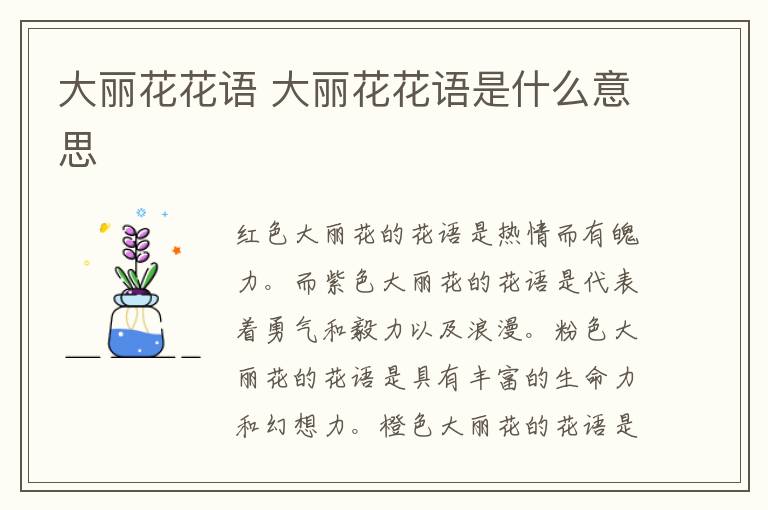 大丽花是世界上花卉品种最多的物种之一,它的花色花形誉为繁多,丰富多彩,是世界名花之一。那么大丽花花语是什么?