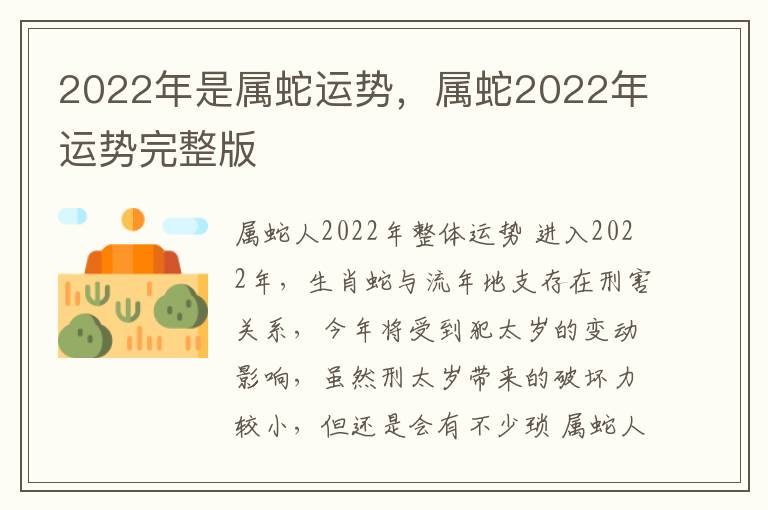 以上就是与2022年是属蛇运势相关内容,是关于运势的分享。看完属蛇2022年运势完整版后,希望这对大家有所帮助!