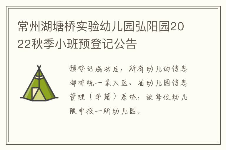 常州湖塘桥实验幼儿园弘阳园2022秋季小班预登记公告