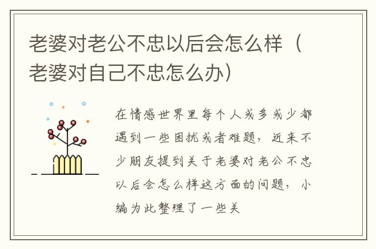 在情感世界里每个人或多或少都遇到一些困扰或者难题,近来不少朋友提到关于老婆对老公不忠以后会怎么样这方面的问题,小编为此整理了一些关于老婆对老公不忠以后会怎么样这个问题的一些解决方式,希望对你有所帮助。
