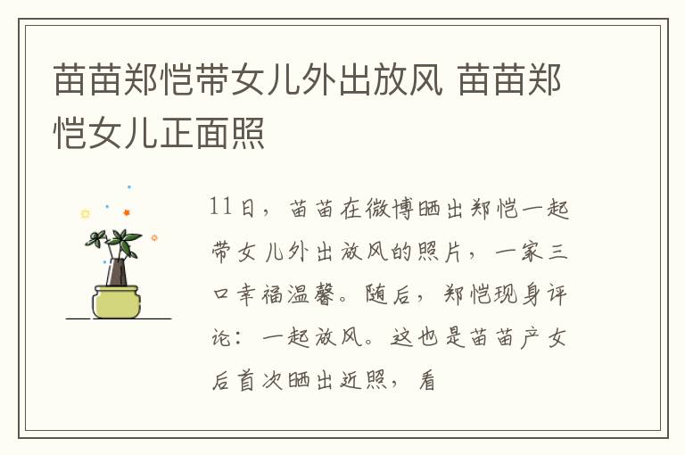11日,苗苗在微博晒出郑恺一起带女儿外出放风的照片,一家三口幸福温馨。随后,郑恺现身评论:“一起放风。”这也是苗苗产女后首次晒出近照,看得出身材恢复迅速。