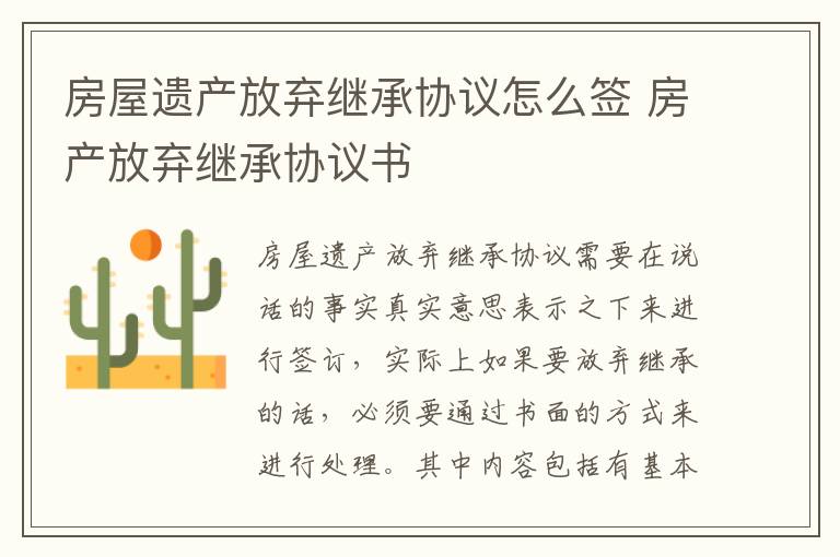 房屋遗产放弃继承协议需要在说话的事实真实意思表示之下来进行签订,