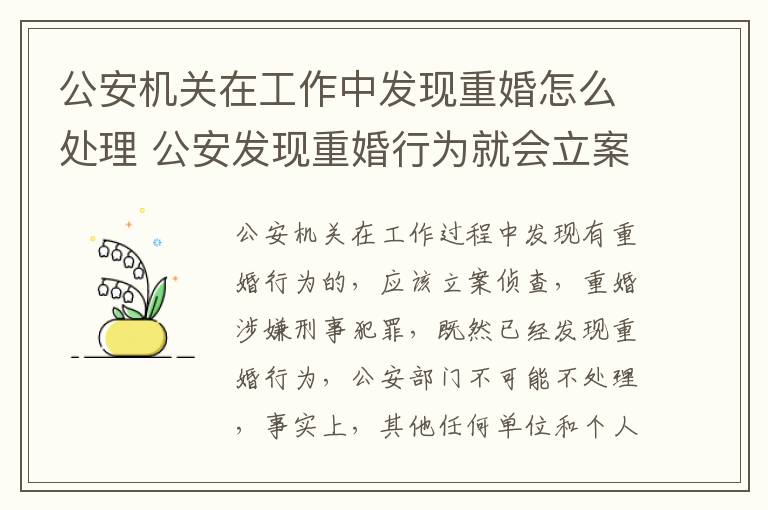 公安机关在工作中发现重婚的,应该依法立案侦查。