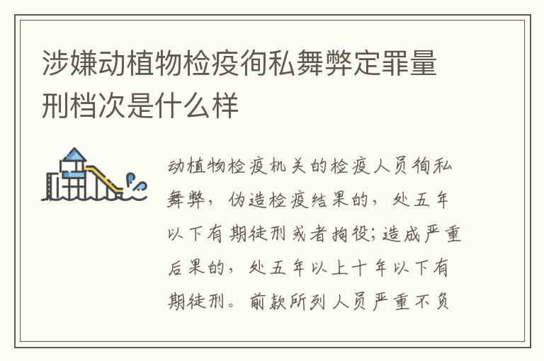 动植物检疫机关的检疫人员徇私舞弊,伪造检疫结果的,处五年以下有期徒刑或者拘役;造成严重后果的,处五年以上十年以下有期徒刑。前款所列人员严重不负责任,对应当检疫的检疫物不检疫,或者延误检疫出证、错误出证,致使国家利益遭受重大损失的,处三年以下有期徒刑或者拘役。