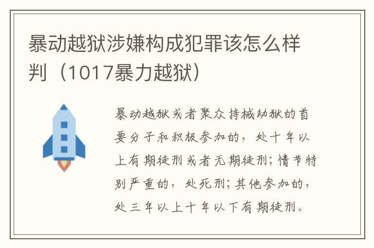 暴动越狱或者聚众持械劫狱的首要分子和积极参加的,处十年以上有期徒刑或者无期徒刑;情节特别严重的,处死刑;其他参加的,处三年以上十年以下有期徒刑。