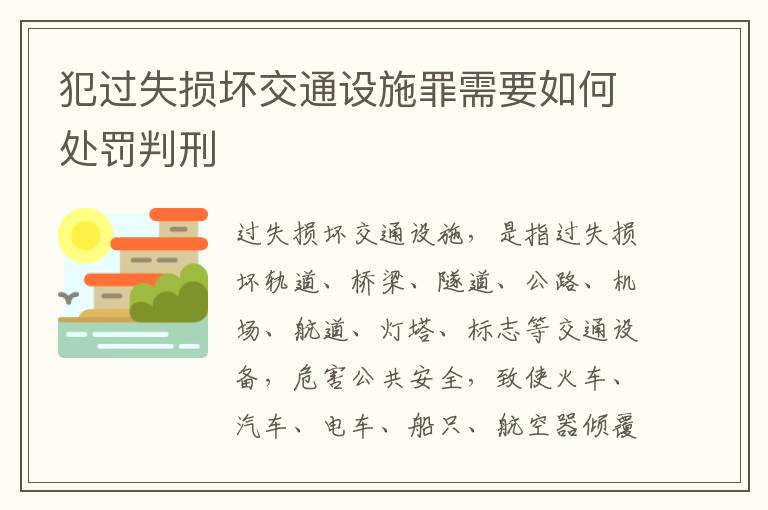 过失损坏交通设施,是指过失损坏轨道、桥梁、隧道、公路、机场、航道、灯塔、标志等交通设备,危害公共安全,致使火车、汽车、电车、船只、航空器倾覆或毁坏,造成严重后果的行为。处三年以上七年以下有期徒刑;情节较轻的,处三年以下有期徒刑或者拘役。