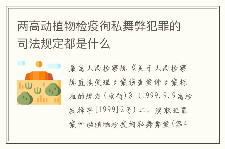 两高动植物检疫徇私舞弊犯罪的司法规定都是什么