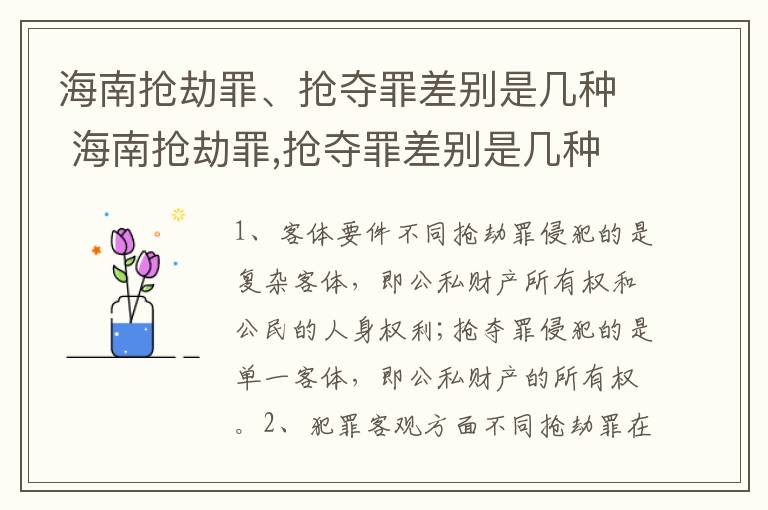 海南抢劫罪、抢夺罪差别是几种 海南抢劫罪,抢夺罪差别是几种犯罪