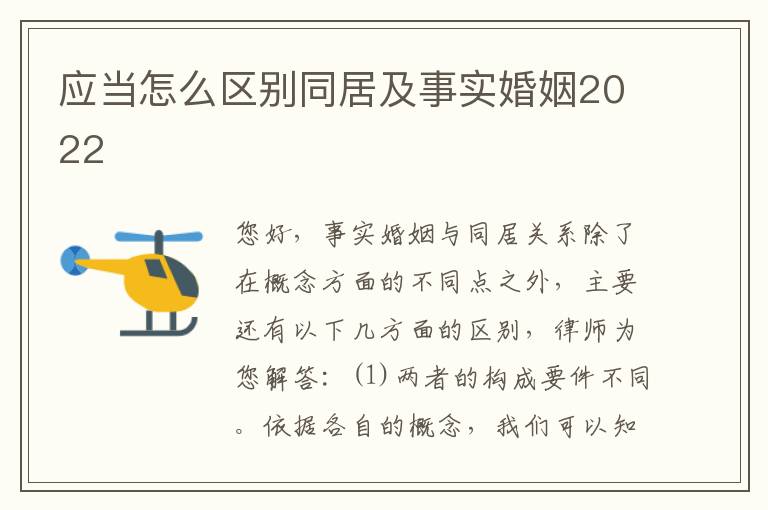 您好,事实婚姻与同居关系除了在概念方面的不同点之外,主要还有以下几方面的区别,律师为您解答: