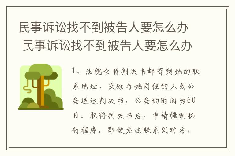 民事诉讼找不到被告人要怎么办 民事诉讼找不到被告人要怎么办呢