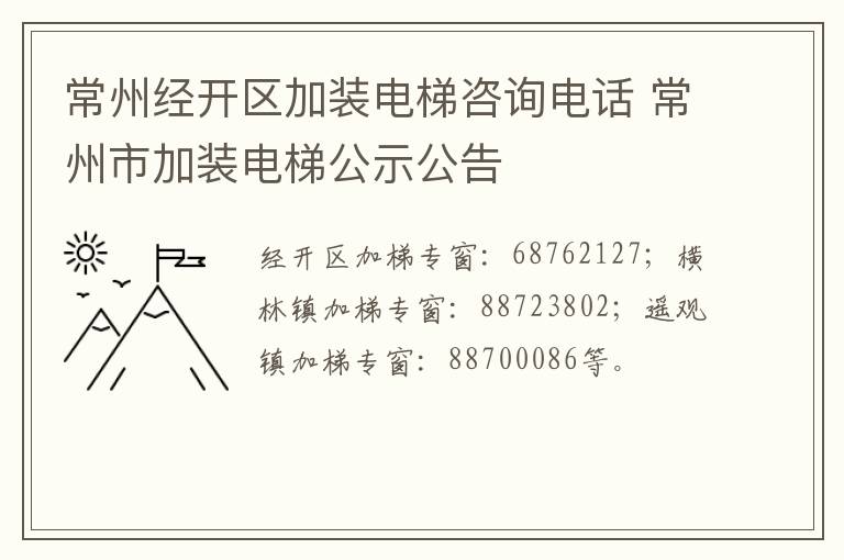 常州经开区加装电梯咨询电话