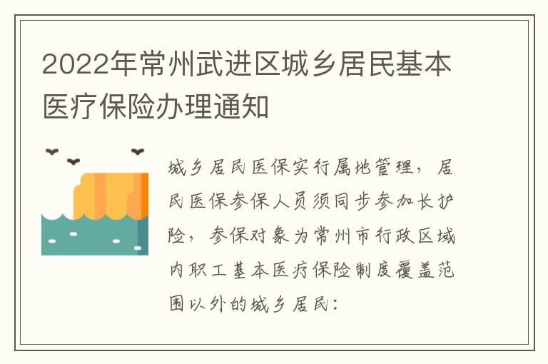 城乡居民医保实行属地管理,居民医保参保人员须同步参加长护险,参保对象为常州市行政区域内职工基本医疗保险制度覆盖范围以外的城乡居民: