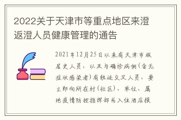 关于天津市等重点地区来澄返澄人员健康管理的通告