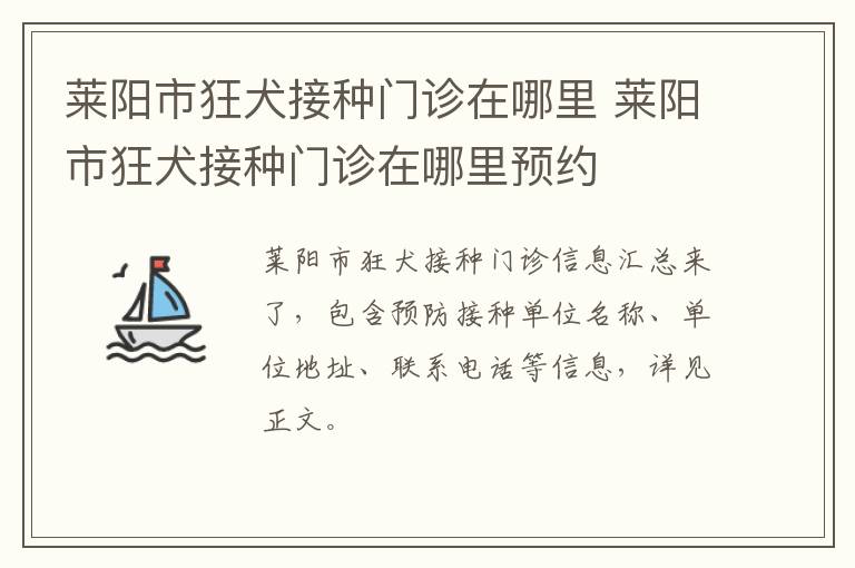 | 莱山区 | 莱山区第三人民医院 | 370613K003 | 狂犬病暴露处置 | 莱山区解甲庄 | 6752022 |